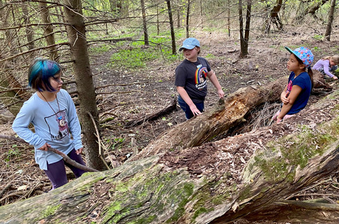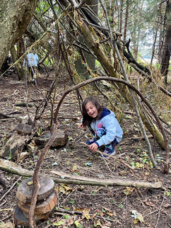 We created our own web of life by taking turns wrapping a ball of yarn around our waist as we each shared one of our special gifts, then passing it along to the next person. We discovered that we have an incredible group of singers, craftspeople, athletes, gardeners, and explorers. This meaningful sharing helps us understand how we connect as a small community of nature school learners and mentors here in Harrington.