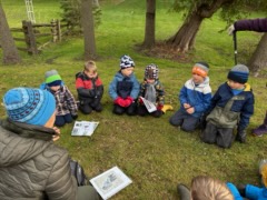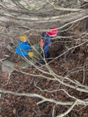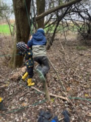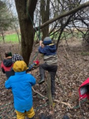 Before heading to shelter building with his friends, Catfish was determined to find a way to use the rope Dragonfly had brought with her. A group of turtles gathered around the rope, pulling it every which way to test it’s strength and throwing it around branches to help with climbing. With a little help from the Nature Mentors, knots were tied and the rope was used by some as a swing and by others as a roost for bats! It was an amazing show of patience and group problem solving! What was your favourite part about our time in Mystery Forest? Cardinal will also be looking out for squirrel dreys, one of her favourite things to see high among the bare tree branches.