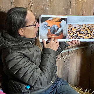 Back at the farm it was fun to eat and play in the hayloft. Dragonfly shared a book about how pumpkins rot and turn into soil (this was after the eating:). What things happen as the pumpkin decomposes, who visits and what voices did she use for these? We are hoping you keep your spider house pumpkins outside and check in on this process. Please send pictures of what is happening:)