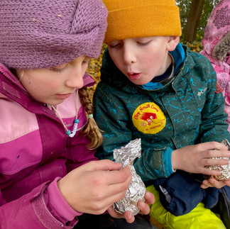Frog couldn’t believe the day was already over! Your children persevered together so well for this first day of cold and wet weather. We applaud you parents for getting them so well prepared, making sure they know what gear they have, and adding some extras to slip into if cold or wet. No one complained of feeling uncomfortable. They just may be a little tired as our hike took us farther afield than we have travelled in a while. The horses were even surprised by our busy day!