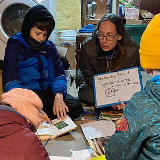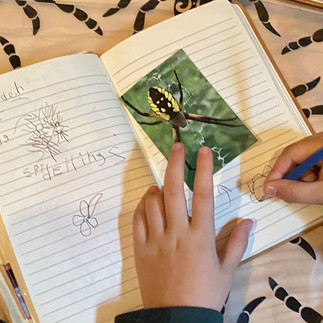 It just keeps rockin' at nature school in the afternoon. We divided into our seedling/sapling groups to get Spider facts from last week into our journals. We are back using our beautiful nature journals from last year and new people were given the same one. What cool features does this journal have and why do we record new animals and plants studied at nature school. We are building a nature literacy bank that will spark interest in other things in the natural world and hopefully lead to questions about how all these living things are CONNECTED!