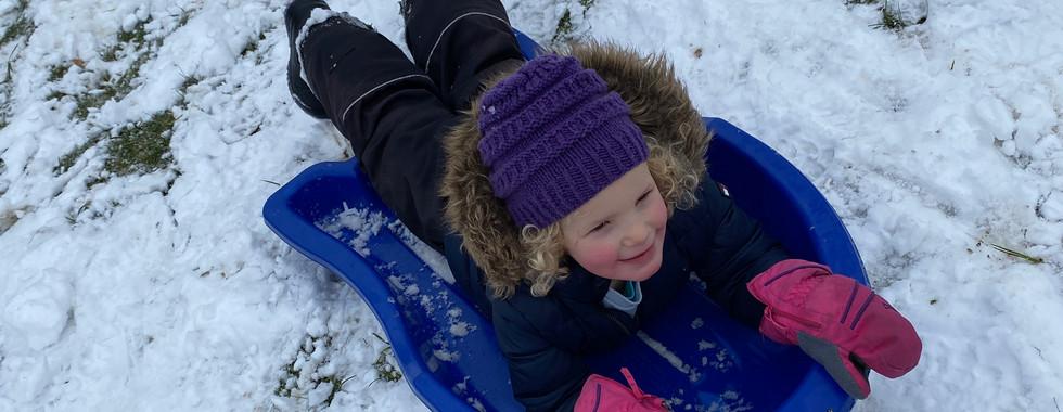 Did you notice anything different today? We celebrated our first snowfall with a wintery walk and with our toboggans, racing down Sunrise Hill. What was fun about sledding? What kind of things won't we see on a snowy day?