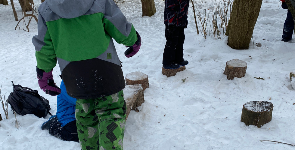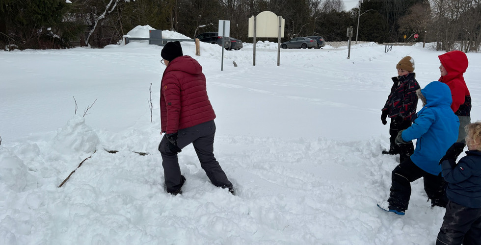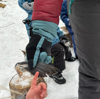 In Mystery Forest, we once again observed how the deer in the forest stick together. Lots of deer scat and footprints where they walk, sleep and just hang out together. We left the animals some bird seed (thanks, Owl!) and some beautiful pink snow hearts! Thanks for fixing the carton feeder, Bobcat!