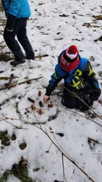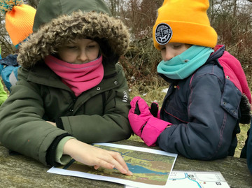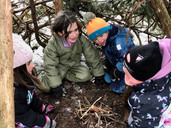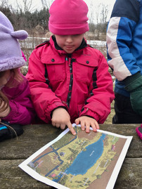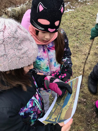 Some key words about groundhogs were found along the trail. Were the cards easy or hard to find? Everyone did a great job sounding out the words. Try sounding them out again: CLAWS, HIBERNATE, WHISTLE, BURROW and KITS How do these words connect back to a groundhog? Puzzle pieces were also hidden along the trail. The puzzle team put the puzzle together with a little help and encouragement from the others. What was the puzzle a picture of?