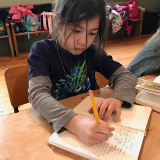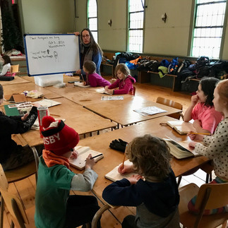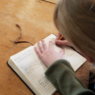 Writing in our journals today was about the theme of woodpeckers. Going back one week in our minds, we were able to think of some interesting facts to write down. Monarch was quick to remember today’s date and write some facts in her journal. What kind of facts about woodpeckers does your child remember? While journaling the students are encouraged to also draw something that connects to the fact so it is a mix of drawing and writing.