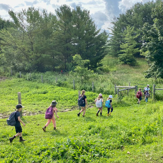 Water is another gift of life. We turned ourselves into baby snapping turtles waiting in sand for the warmth of the sun to emerge and rush towards a nearby pond or stream. Who might be the predators we meet or dangers that might end our first journey. So many other creatures live here in and around the water. Can you name the six from our scavenger hunt? Look in your nature journal for clues. Soon we were knee deep at Crayfish Catch on the hunt for the real thing! Water is also just for fun. Check out the playful ways we kept cool and worked as a team on Water Day!