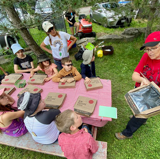 The Backwoods is an awesome place to sail handmade boats and construct fairy houses. Chat about wander time adventures that were important to your child. Back at the farm we celebrated summer with LOADS of creating. See if your child’s solar cooker melted a tasty treat and check out the latest recyclable sandal fashions. Ask some questions about how their cooker works and what foods can be dehydrated or melted inside this simple pizza box. Thank you to Beaver for canvassing her local pizza joints for boxes and preparing all the pieces so everyone was successful! Our goodbyes also included time connecting with the ponies and making memory rocks to leave at our trees friends. We are hopeful that others will follow in our footsteps and find this happy reminder that we were here.