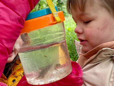 Today, everyone had a net and a bug bin and help from the wise 'oaks'. Using nets to see what lives in the plants.