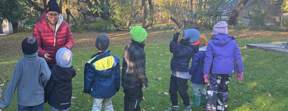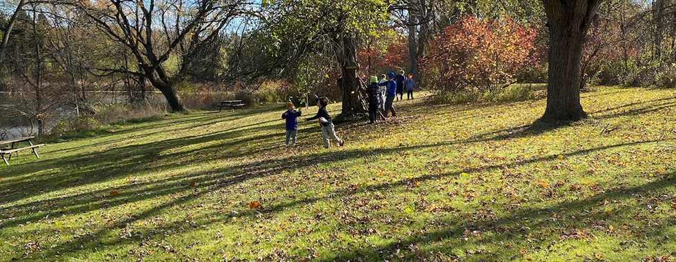Seed catchers to seed releasers! As you walked around looking for seeds, what did you notice about your clothing? Owl and Blue Spruce walked gently into the field a few times to cover themselves in goldenrod seeds! Did you enjoy rolling down the hill covered with seeds? Almost like a human lint roller! Do you think any of the seeds we caught and set free on the grass and in the air will take root? Only time will tell! See you in the spring little seeds…or will we?