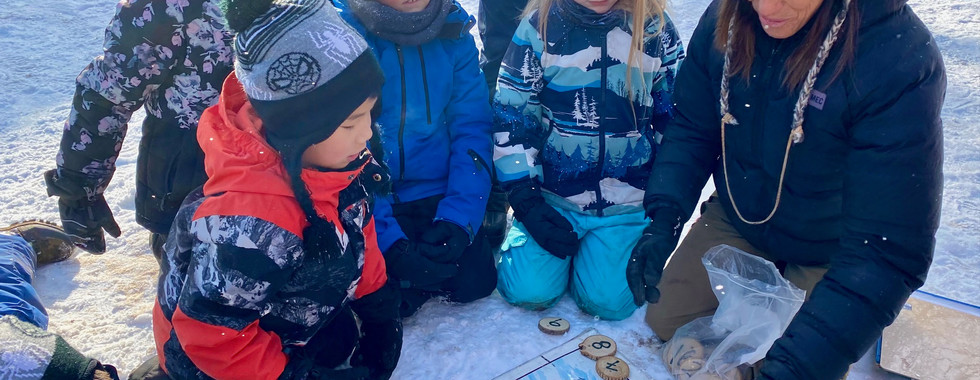 The Snow snakes have to be pushed down the hill in a very specific way. Try demonstrating this with a stick or broom at home with your family to show them this new skill you've learned.