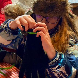 We know about dressing for the cold in layers so that we don’t lose much of our body heat. We also learned that our head, hands, and feet lose heat the fastest. See if you can explain our “Mittens versus Gloves” experiment to your family. Which one keeps our hands the warmest and why? You can test this out at home by going outside with a mitten on one hand and a glove on the other. Let us know which one kept your hand warmer.