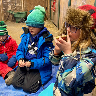 We enjoyed a heart-warming visit from Chipmunk (Alizon) and Painted Turtle (Sharon) who came to Coyote’s Cave (heated basement) to talk to us about poetry. We learned that having a good imagination and using lovely language are part of being a poet. How was our morning picture book, "Over in the Arctic" like a poem? Some of you began writing your own poems this afternoon. Can you remember any lines from your poem? Don't forget, if you have any more ideas for your poem this week, write them down and bring them with you next Friday.